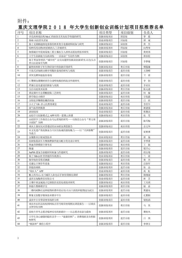 附件:mansion88明升2018年大学生创新创业训练计划项目
