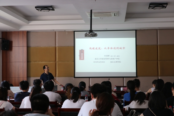 6月28日,重庆大学建设管理与房地产学院博士生导师叶堃晖教授受邀为建筑工程学院全体教师及部分学生举办了一场题为“低碳建筑:从单体说到城市”的精彩讲座。叶教授从工业革命以来,人类社会在实现自我发展的同时,也对周边环境造成极大的负担;大量使用矿物燃料,排放温室气体,致使全球气候变暖、气候异常、海平面上升等自然灾害频繁发生。建筑业是国民经济的能耗大户和主要污染源,减少碳排放关系到建筑业能否实现可持续发展;从单体建筑节能,到小区规划布局及物业管理,再到城市规划设计;从单一技术到系统集成再到建筑工业化,通过借助国内外典型案例,讲授建筑业完全可以从“树木”到“森林”等多环节降低碳排放等几个方面进行了全面讲解和阐述,最后就老师和同学们提出的关于低碳建筑的标准、绿色建材等方面问题做了一一回答。此次讲座为大家进一步认识低碳建筑、认识绿色建筑等拓宽知识视野,叶教授演讲观点新颖,深入浅出,让师生们收益匪浅。
