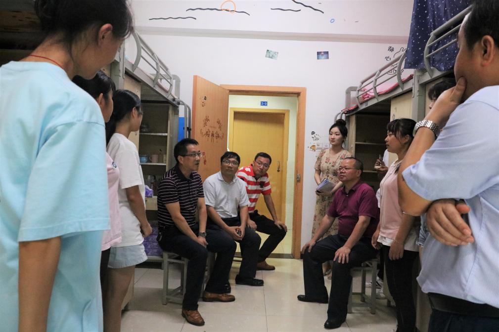 9月8日下午五点,为了解我院学生住宿和生活情况,帮助新生解决生活和习惯问题,引领新生尽快适应新生活新环境,mansion88明升副校长漆新贵、党政办和教学办负责人黎志和王东强以及我院党总支书记何小兵、副院长张海龙、副院长沈中友、学工办负责人左雨婷及相关辅导员前往杏苑新生宿舍进行走访慰问。同时与新生家长进行了深入交流,使家长也感受到学校各领导老师的深切关怀。