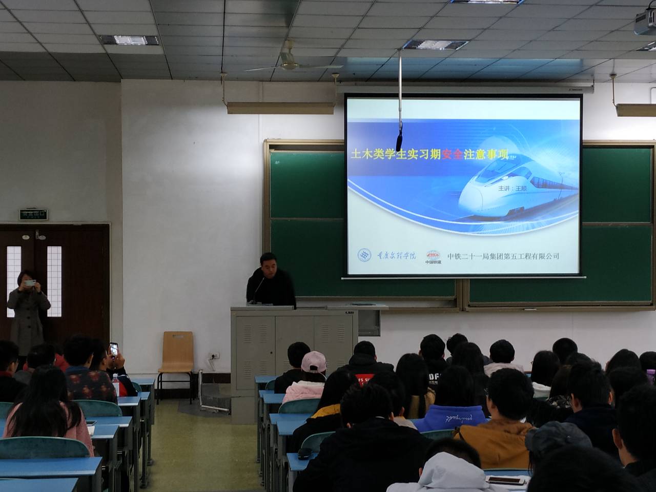 毕业实习安全是头等大事,会中学院负责人、毕业班辅导员、实习学生三方共同签订了《mansion88明升毕业生实习安全责任书》。针对安全教育,学院特别邀请了中铁21局五公司永川片区项目党工委书记、总工程师王顺高级工程师为同学们作安全教育专题培训,王总以实际安全案例的形式为同学们系统讲解了工程现场的安全问题和防范措施,提醒同学们要增强安全意识,遵纪守规,加强安全防护,同学们受益匪浅。