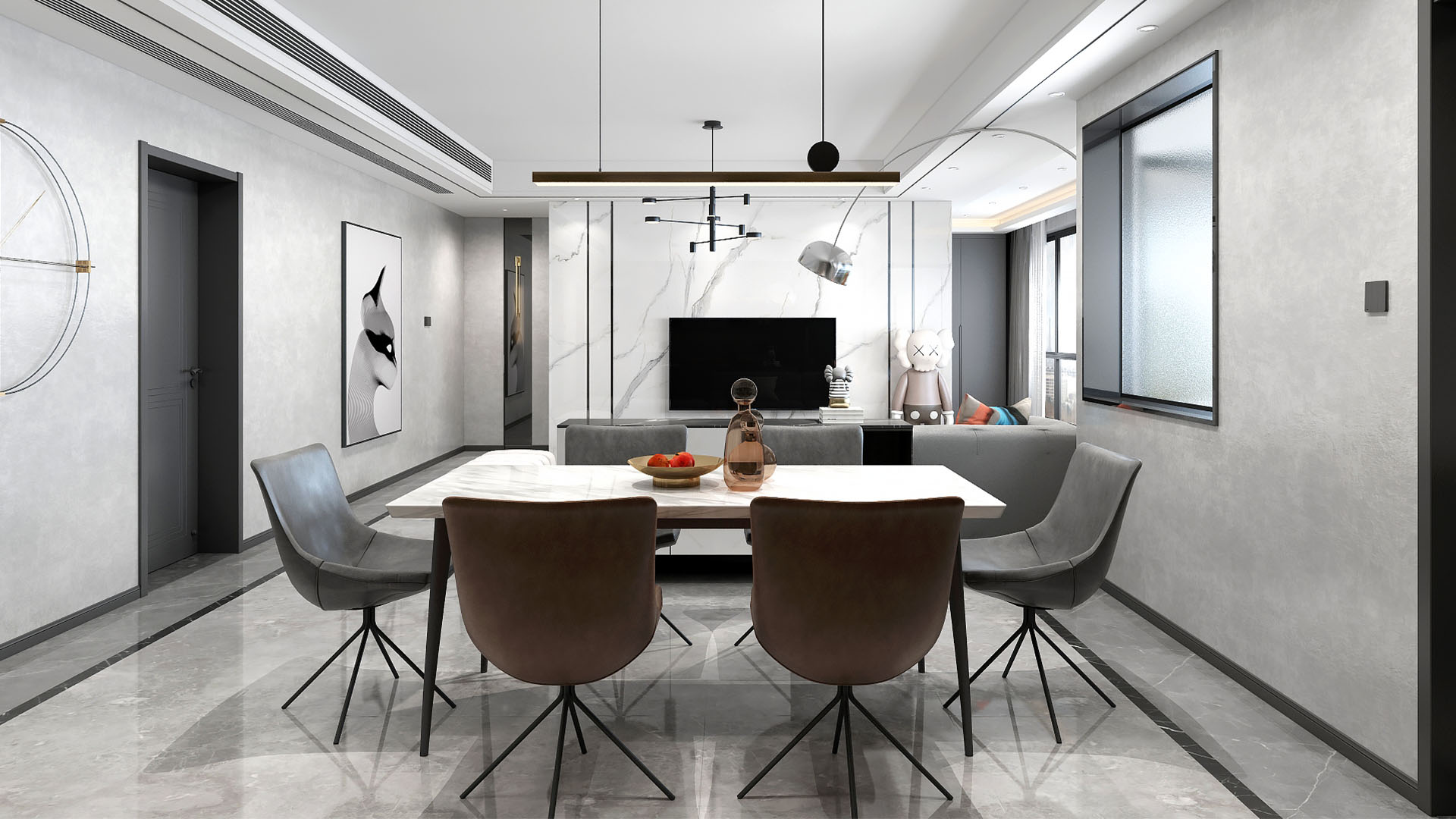 2019年12月,我们工作室接到了成立以来的第一份委托——对一位客户位于成都天府半岛的四居室新房进行装修。此客户喜欢黑白分明的色调、简单的造型,在经过和客户的商议与数天的设计后,方案敲定进行装修,成果受到了一家人的一致好评。验收图如下: