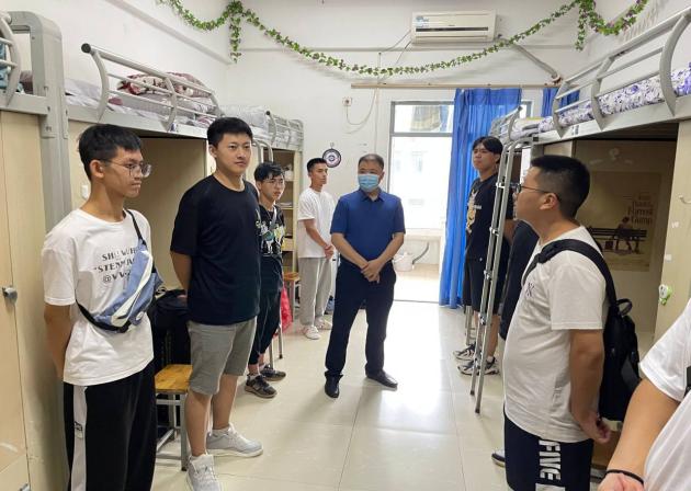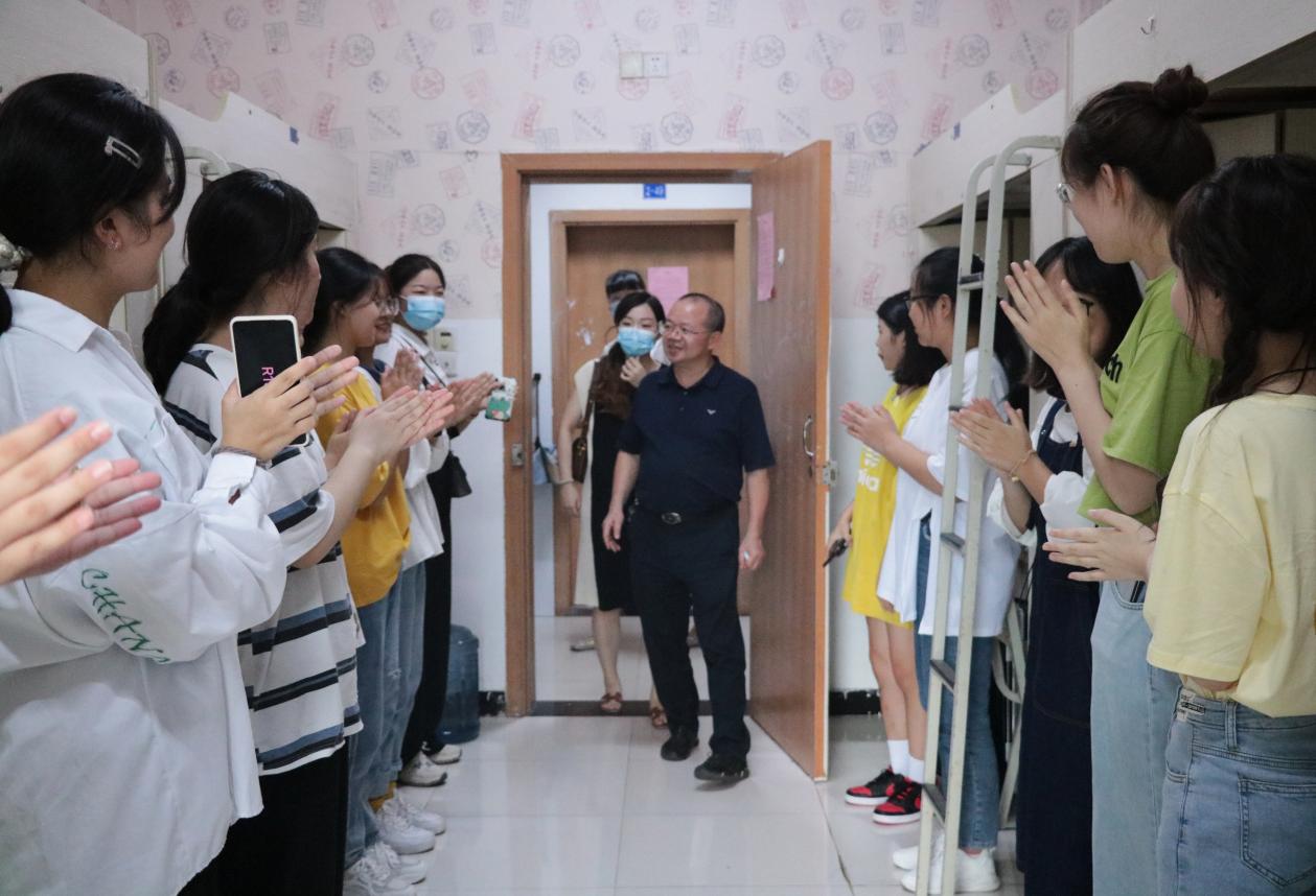 9月8日,为了解我院新生入学到校情况,引导新生积极适应大学生活,我院党总支书记何小兵、副院长张海龙、副院长沈中友及全体学工人员和教师代表深入学生寝室慰问并看望2021级新生。