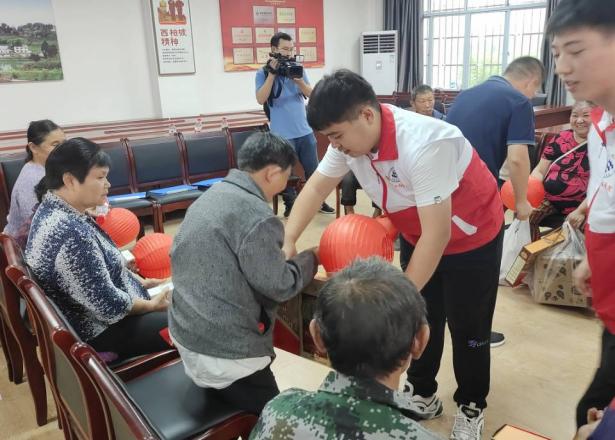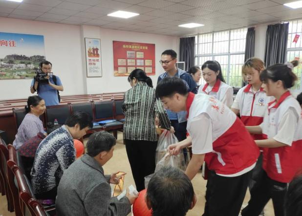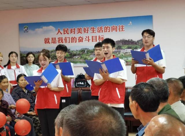 在活动现场,志愿者以生动的知识问答形式,与通明村残疾群体一起学习党的十九大知识与乡村振兴的优惠政策,“中国共产党实现全面建成小康社会第一阶段的百年奋斗目标在哪一年?”“2020年”,志愿者们以有趣的问答方式让残疾人群体更加体会到党和国家对他们的关心与帮助。嘹亮的歌声响起,志愿者们饱含热情、活力四射,带来了文艺表演,会场洋溢着与残疾人朋友其乐融融“一家亲”的氛围。最后,区残联与土木工程学院志愿者为残疾人送上了中秋爱心月饼及慰问品,为板桥镇通明村残疾群体送上了亲切的问候和美好的节日祝福。