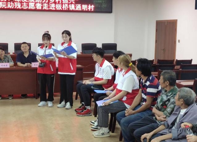在板桥镇通明村村民服务中心会议室内,板桥镇通明村第一书记对永川区残联及mansion88明升土木工程学院所有工作人员、志愿者表示欢迎。