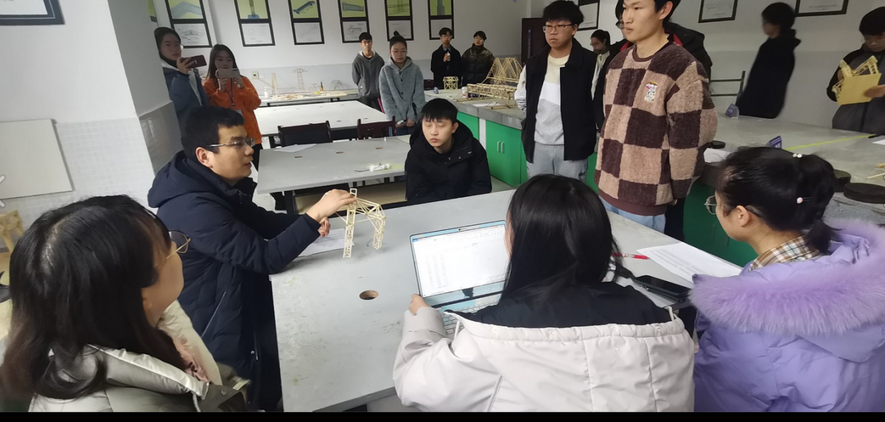 在赛场上,每支队伍都展现了自己独特的结构艺术,运用不同的思维和理念碰撞出了绚丽的火花,每一个模型都不仅仅只是外观的精美,同时还能承载高强度荷载的考验。杨惠会老师和王明振老师在比赛过程中为每组参赛选手的作品都做出了较高的评价,并提出了宝贵的建议,让选手们都获益匪浅,受益良多。