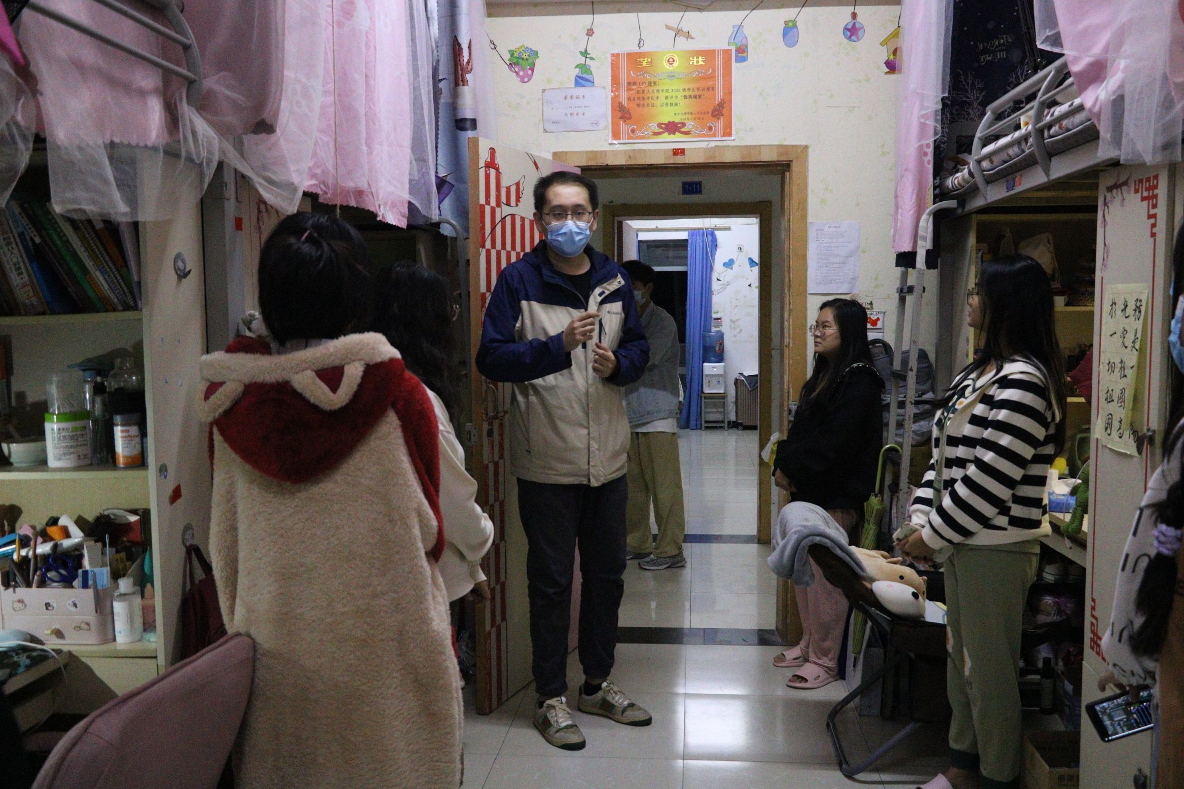 为深入了解学生思想动态和生活学习情况,切实加强疫情防控期间学生管理服务,提高学生防疫意识,10月31日至11月2日期间,学院党总支书记蒋礼文、副书记兼副院长张海龙、党政办主任徐建卿、21级辅导员冯继威带队走访学生寝室,给同学送去亲切地关怀和慰问。