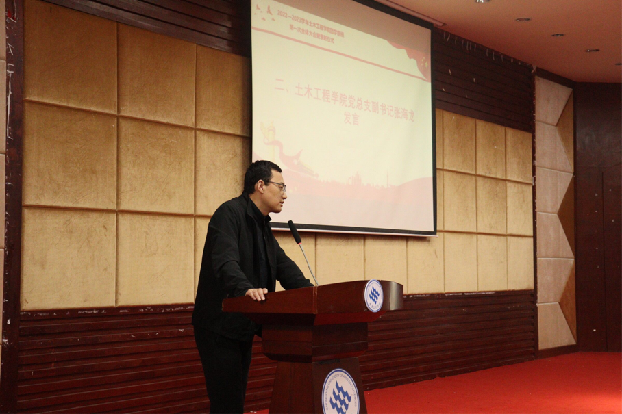 大会在慷慨激昂的团歌声中拉开了序幕。张海龙在致辞中充分肯定了我院团学组织在上一学期的各项工作,并对团学组织全体成员提出以下建议:一是要积极发挥先锋模范作用;二是要做到各美其美,美人之美,美美与共;三是应担起肩上的重担,做有为青年,志存高远、脚踏实地、奋勇拼搏,体现出青年的精气神。