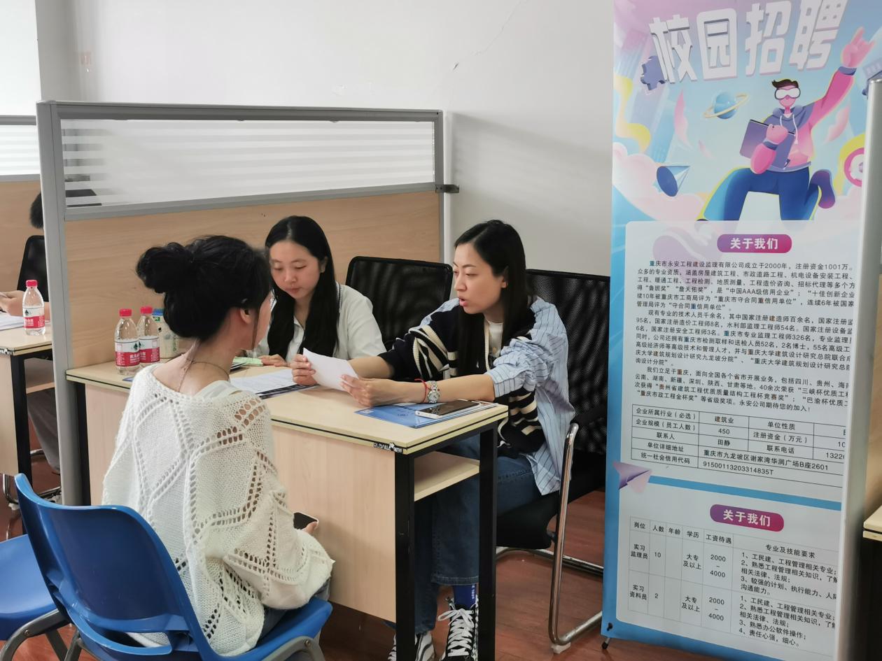 本次招聘会汇集了来自上海、四川、重庆主城等11家优秀建筑类企业,为同学们提供近100个就业岗位,同学们可根据自身发展需求,选择自身专业对口的工作。