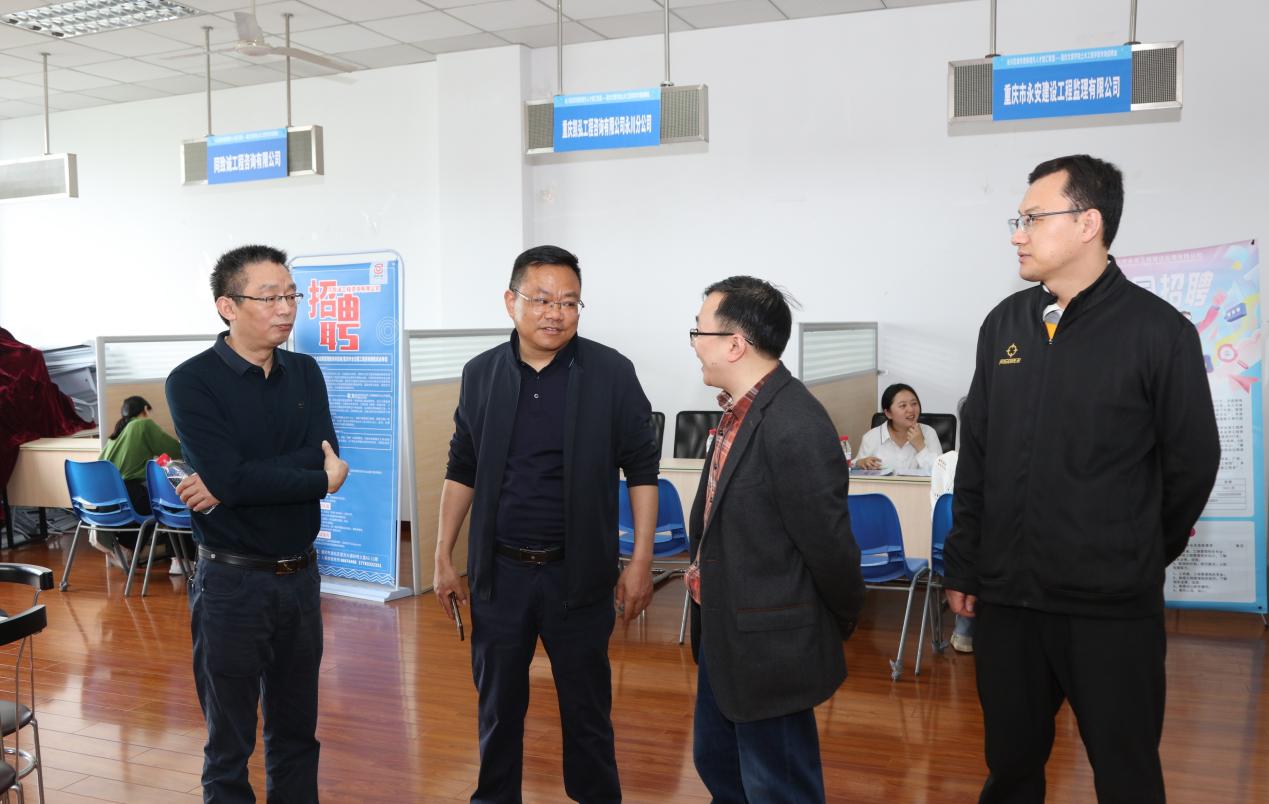 为加强推动毕业生就业,4月11日上午,土木工程学院联合永川区城市更新提升人才智慧联盟开展了2023届毕业生就业专场招聘会。永川区建委原质价站站长夏进鹏、学校招生就业处副处长周道林、学院党总支书记蒋礼文、副书记兼副院长张海龙到现场看望了用人单位和毕业生。