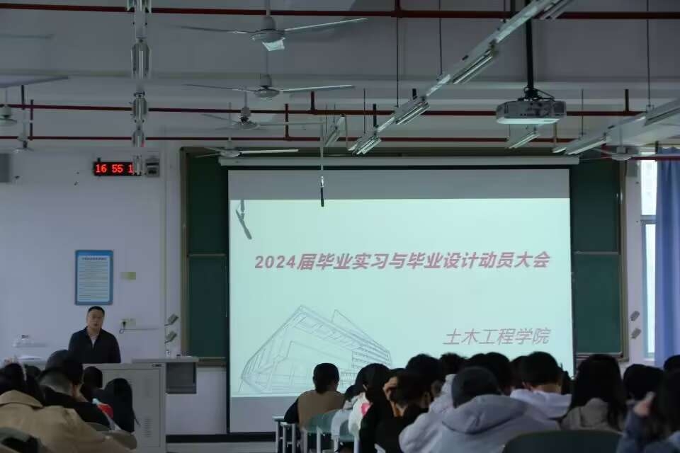 会上,土木工程学院实验实训中心主任作了动员讲话。他强调毕业实习是高校人才培养的一个重要环节,对于深化专业知识学习,锻炼提升学生的社会适应能力、顺利择业就业具有重要意义。他要求全体毕业生,一是增强纪律意识,遵守校规校纪和实习单位规章制度,以踏实的作风和严谨的态度投入毕业实习工作中,虚心向实习单位同事学习,圆满完成实习任务;二是要将毕业生实习和就业有机结合,积极向有意向的单位投递简历;三是要认真完成论文撰写工作,加强与指导老师的联系,深化理论学习与实践应用,确保顺利毕业;最后,实验实训中心主任重点强调了实习安全,并就毕业生实习期间的实习管理、求职择业等工作做出安排。