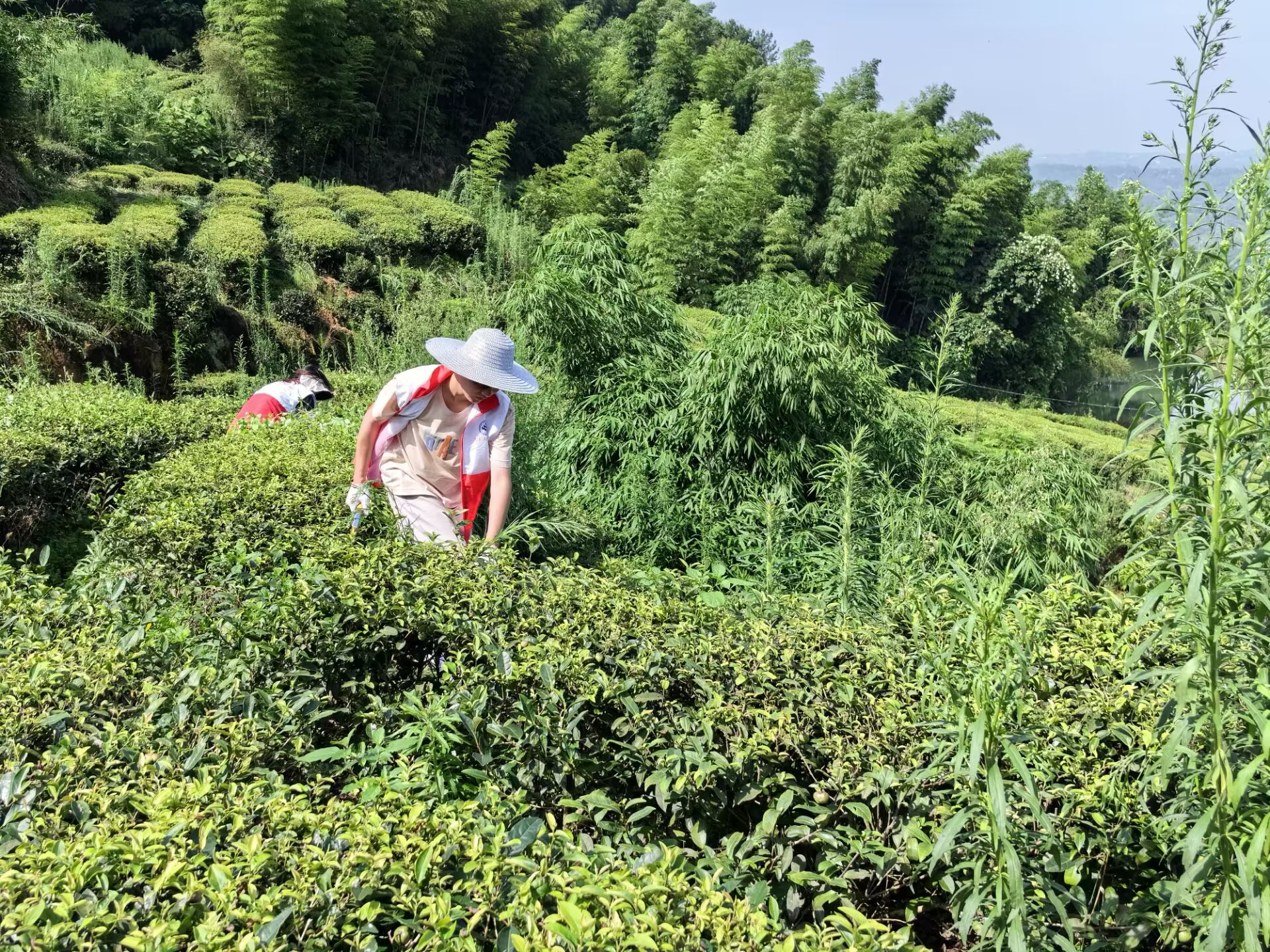 科学规划,青春助力。依据茶园的地形特点和植被分布情况,志愿者们精心策划,我院大学生志愿者们怀揣着对农业的热爱和对社会的责任感,积极投入到锄草工作中。他们与经验丰富的农业技术员紧密合作,共同制定了详尽的锄草计划。项目成员被划分为多个小组,每个小组在农业技术员的带领下,由大学生志愿者们负责各自区域的锄草任务,将所学知识与实际操作相结合,为茶园的健康生长贡献青春力量。