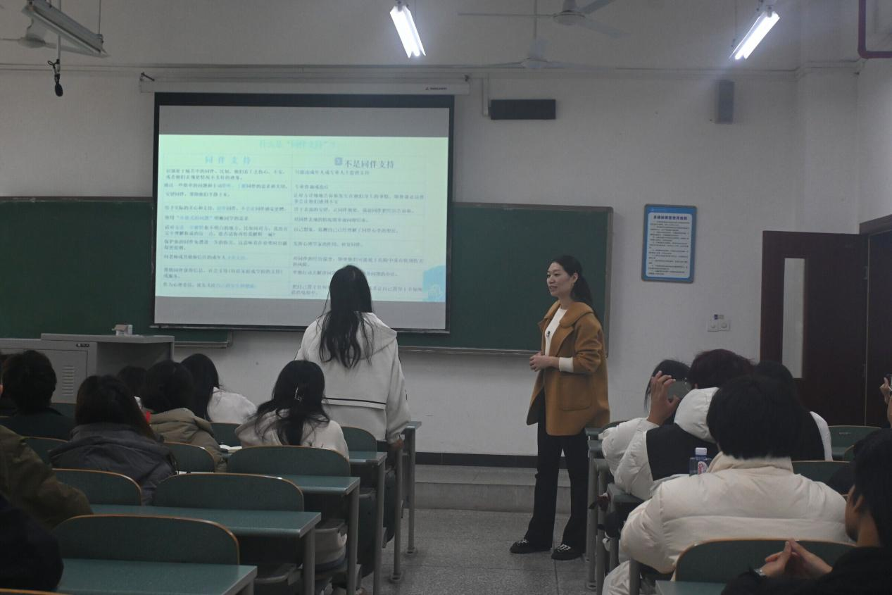 为提升大学生心理健康工作专业能力,增强心理危机防控工作实效性与针对性,11月20日下午,mansion88明升特邀重庆市永川区幼妇保健院心理医生谢金玲主任在红河B区知行楼B106开展“学生心理健康”专题培训。mansion88明升学工办副主任左雨婷、各班班委、心理联络员以及书香观云社区探杏苑(左)各楼层学生层长、学生寝室长等参加培训。