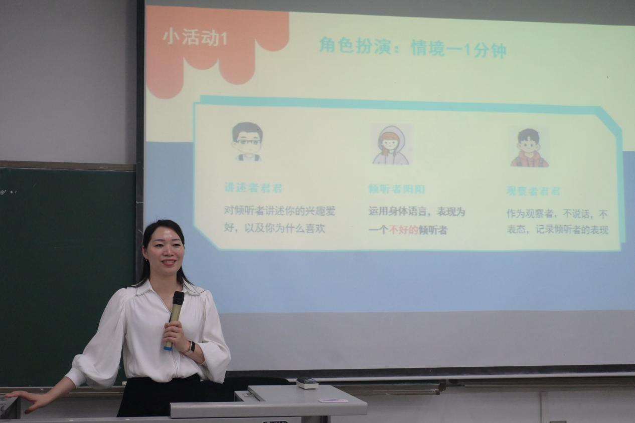 永川区妇幼保健院心理科负责人谢金玲主任结合邱裕倢的案例,进行了现场心理辅导演示,并带领同学们进行了深呼吸放松训练等心理赋能练习,帮助大家掌握应对逆境的科学方法。
